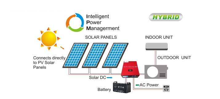 Working Principle of On/Off Grid Hybrid Solar Air Conditioner