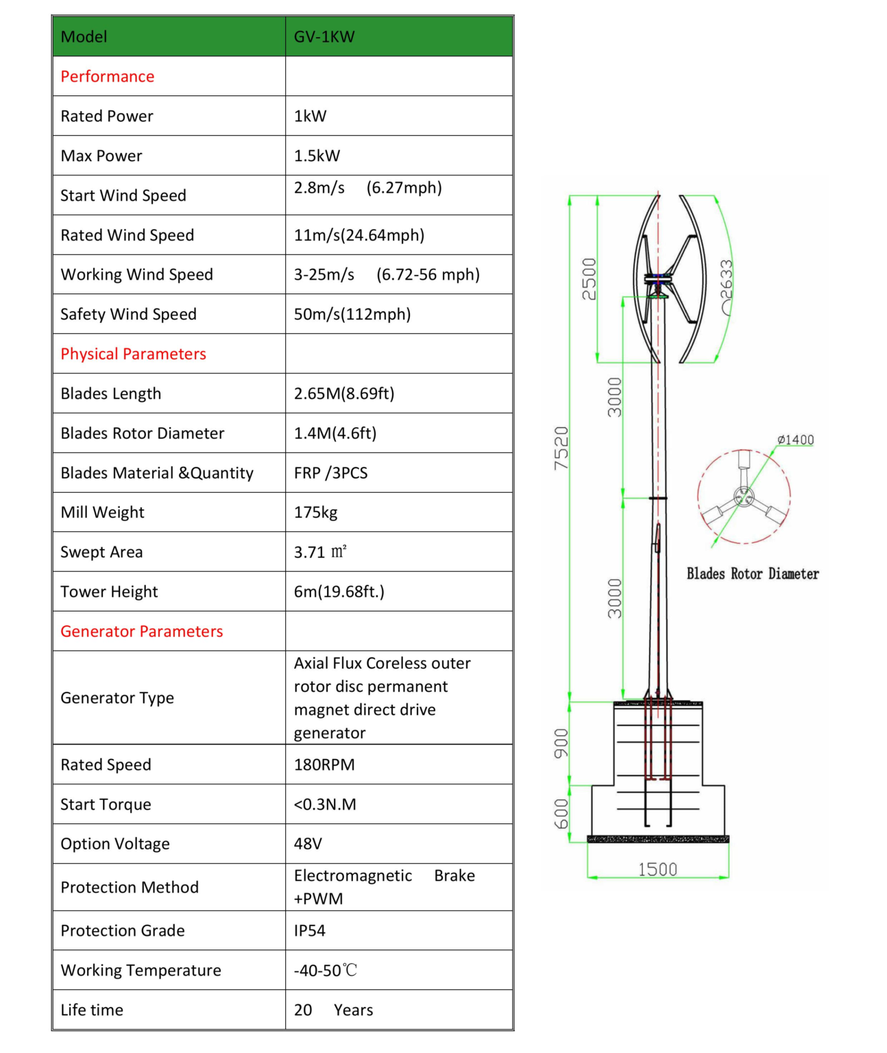 600Watt Vertical Axis Wind Turbine