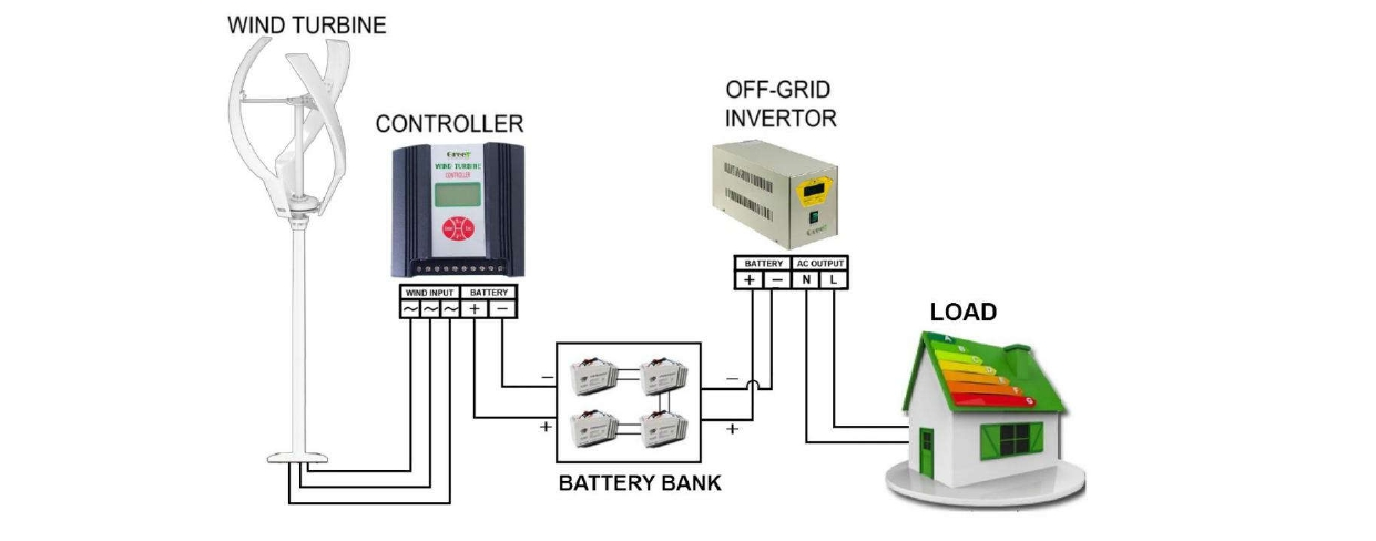 Off-grid system wind turbine low cut in wind speed charge
